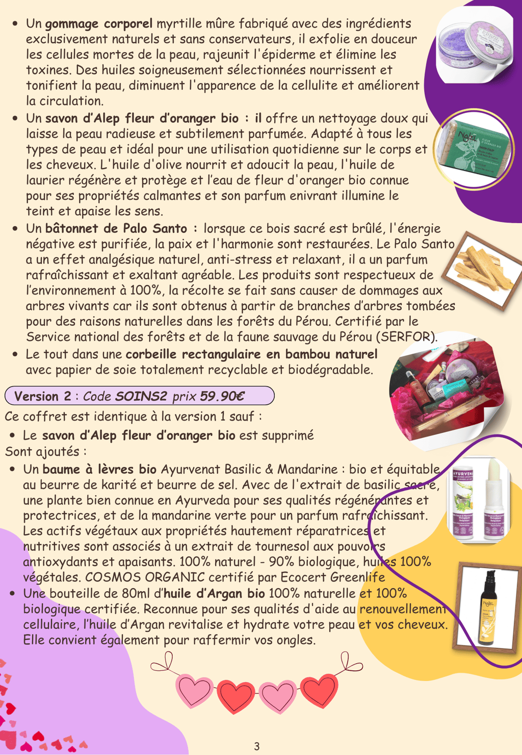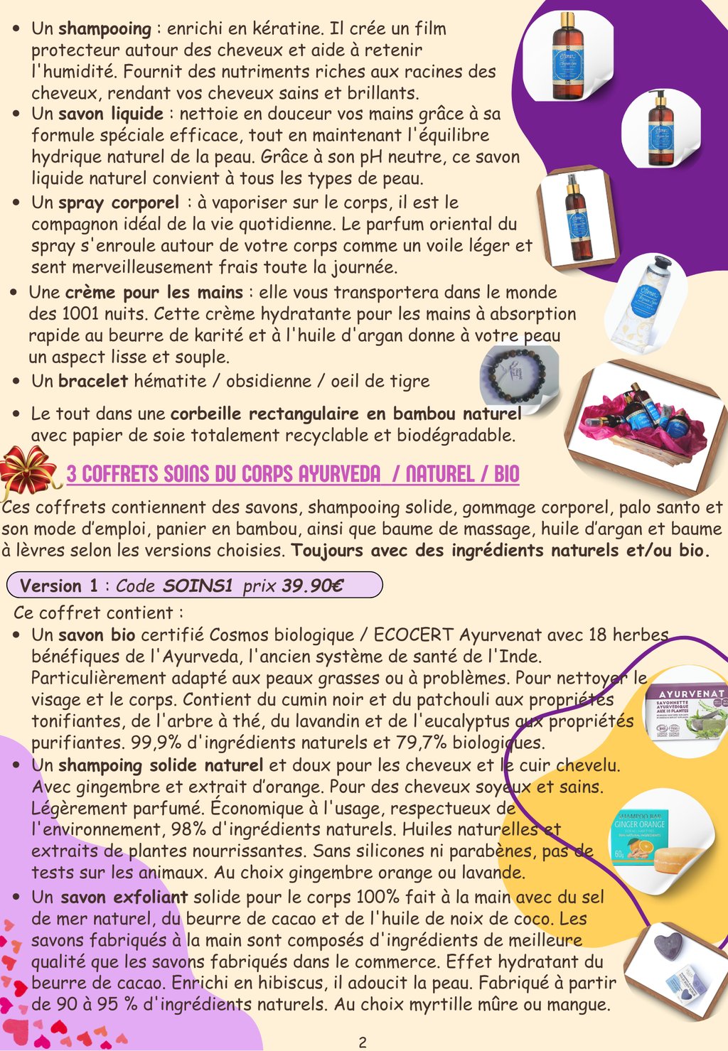 J'ai créé quelques coffrets avec des articles de qualité rigoureusement choisis, utilisant des ingrédients naturels / bio, respectueux de la nature et sans test sur les animaux.