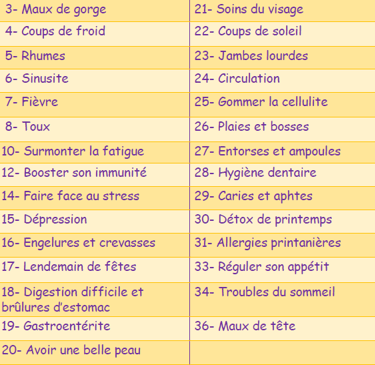 Et pour tout achat d'un coffret recevez mon ebook de 38 pages "Remèdes naturels pour maux du quotidien" (sommaire ci-dessous)